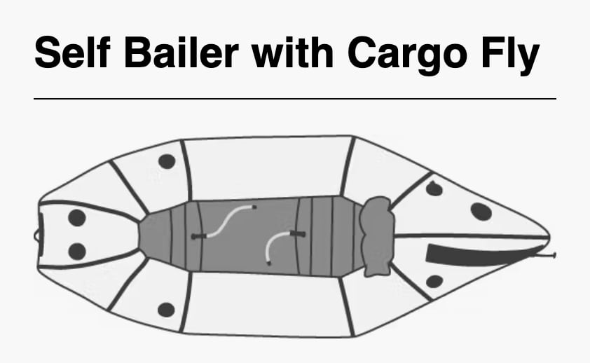 カーゴフライ付きのカリブーは、カーゴ フライジッパー付きのオープンビルド構成で利用できるため、パックラフトのチューブ内部にギアを収納できます。