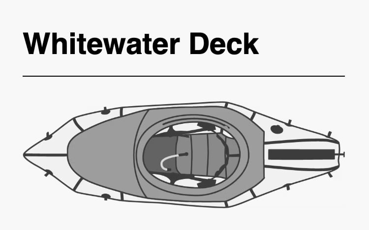 このビルド構成では、ホワイトウォーターデッキ、特許取得済みの3点式サイストラップとWWフットブレースが付属します。これは、ライトウォーターとホワイトウォーターのパックラフティングに最適な構成です。※スプレースカートは別売りです。