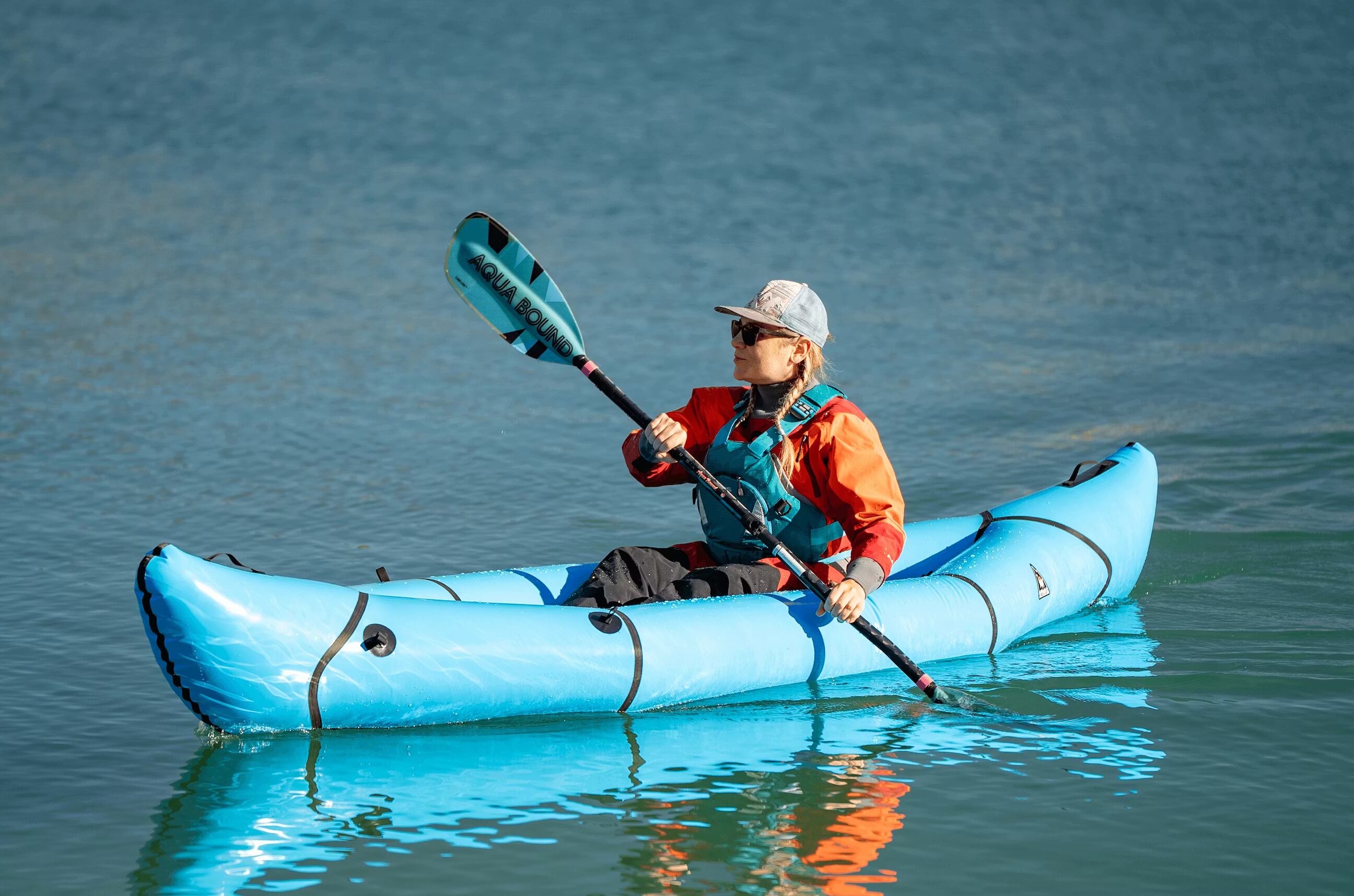 長めの船体により、従来のパックラフトよりも抵抗が少なくスピードが出ます、フラットウォーターでの、早朝パドリングクラブでのセッションにも参加可能!